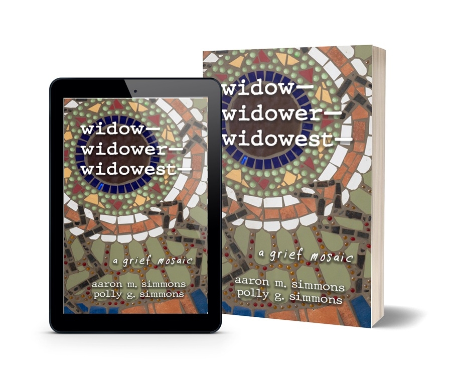 widow— widower— widowest— a grief mosaic, a powerful and unconventional grief memoir by Aaron and Polly Simmons, was released on January 20, 2026. Written across time and absence, the book weaves together Polly’s posthumous writing and art with reflections written by her husband Aaron following her death. Together, their voices form a shared narrative of love, loss, and what it means to survive when a partner does not.