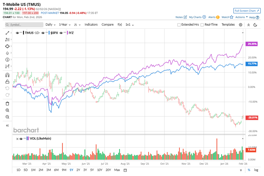 Shares of this leading telco operator have underperformed the broader market over the past year. TMUS has declined 16.3% over this time frame, while the broader S&P 500 Index ($SPX) has rallied nearly 15.5%. In 2026, TMUS stock is down 4%, compared to the SPX’s 1.9% rise on a YTD basis.