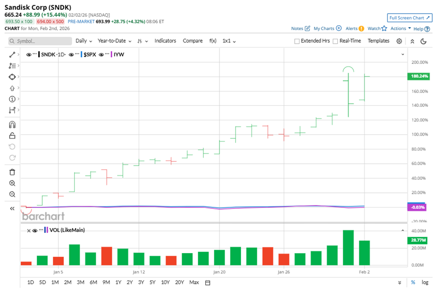 Shares of this flash memory titan have significantly outperformed the broader market on a YTD basis. SNDK has gained 180.2% over this time frame, while the broader S&P 500 Index ($SPX) has rallied nearly 15.5%. Over the past six months, SNDK stock is up significantly, surpassing the SPX’s 1.9% rise over the same time frame.